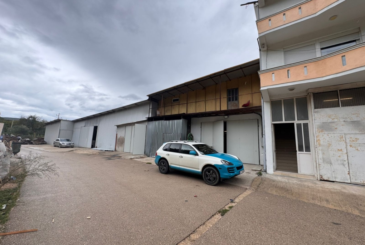 Zu verkaufen: Ein Haus mit einem großen angrenzenden Hangar/Werkstatt, nur 50 Meter von der Hauptstraße am Eingang zur Stadt Ulcinj entfernt.